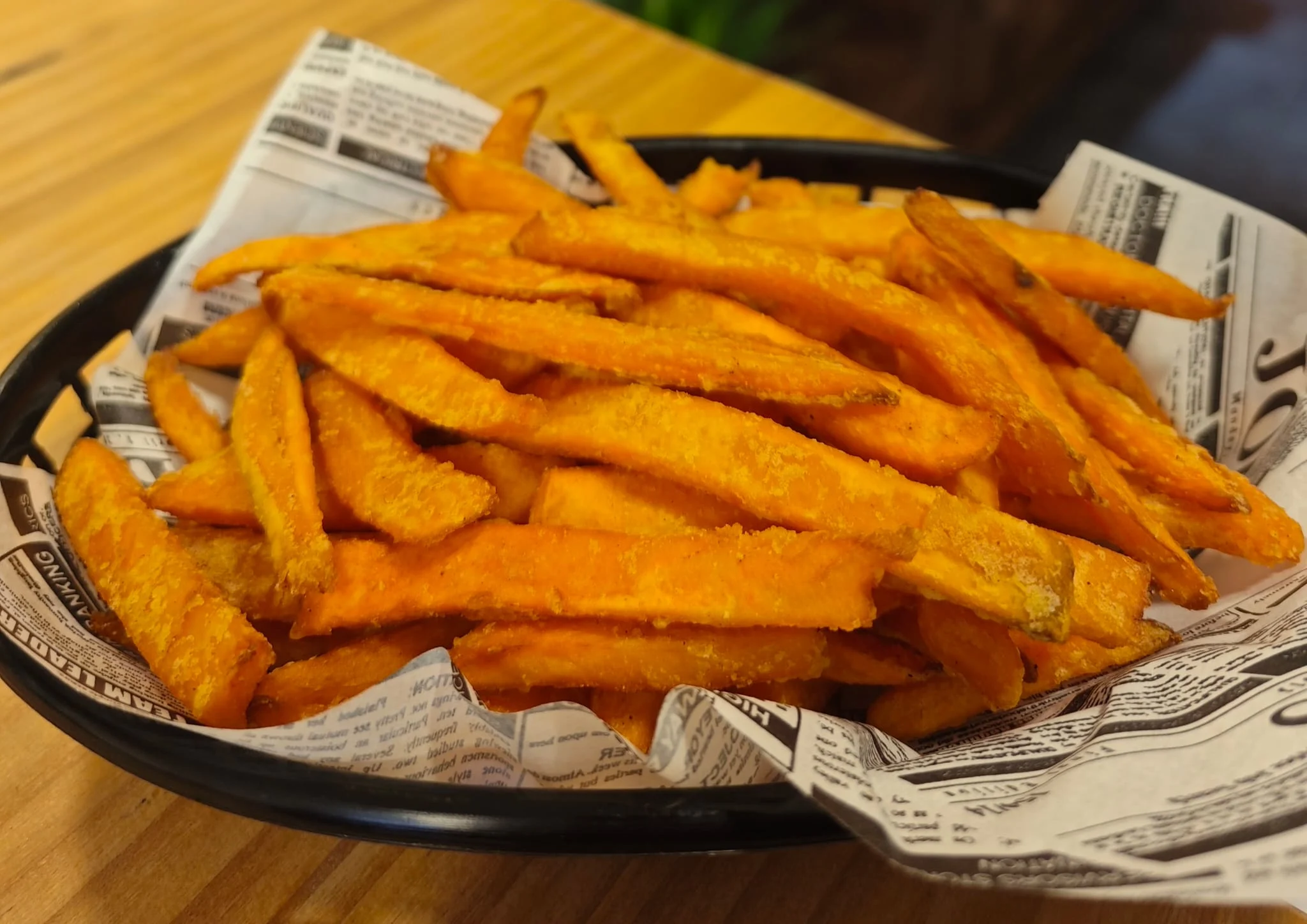 Boniato frito crujiente, una alternativa dulce y saladas a las patatas fritas.